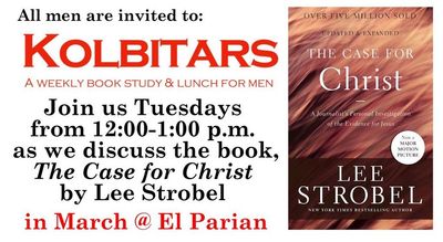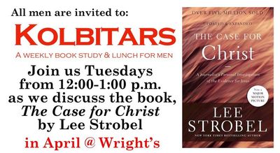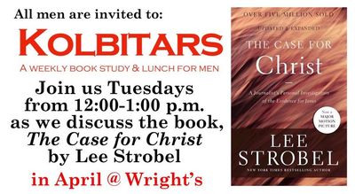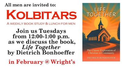 - Kolbitars Men's Ministry Book Study and Lunch– 12:00 PM to 1:00 PM