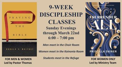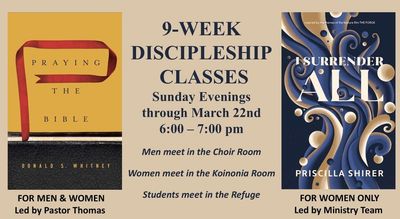 - Discipleship Classes– 6:00 PM to 7:00 PM